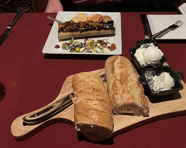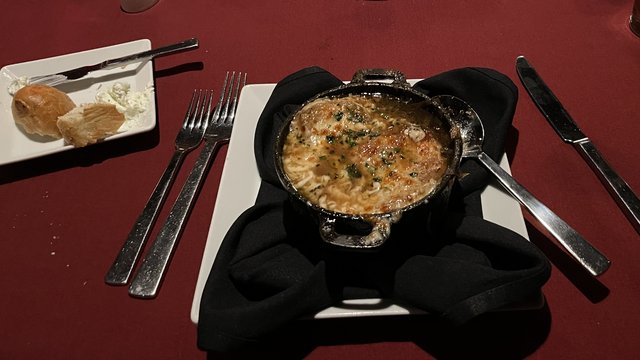 Killer bottle of wine, filet mignon, French onion soup, some bone marrow on crostini, and old school Vegas service.