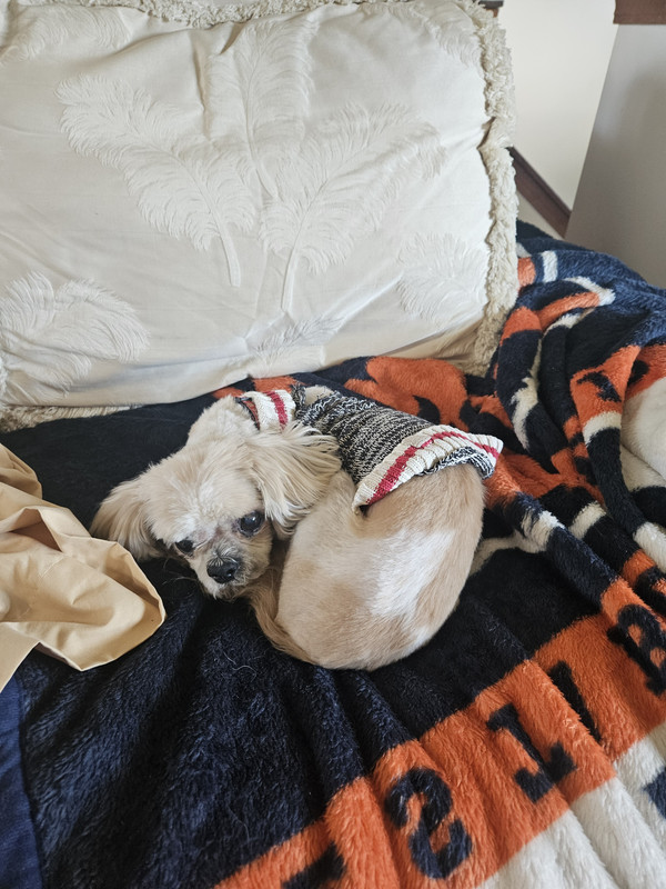 I tried trimming him once with clippers, nicked up his little back legs so bad I’m scared to try it again, and I can’t even try to trim the face
