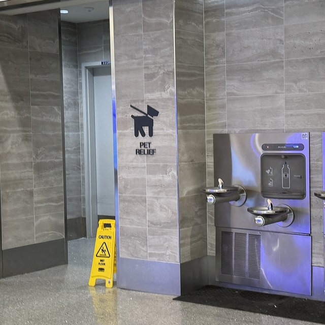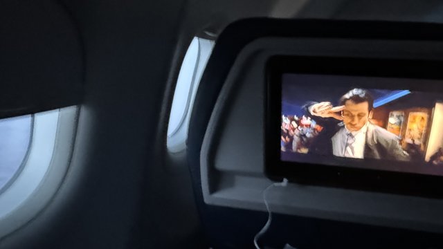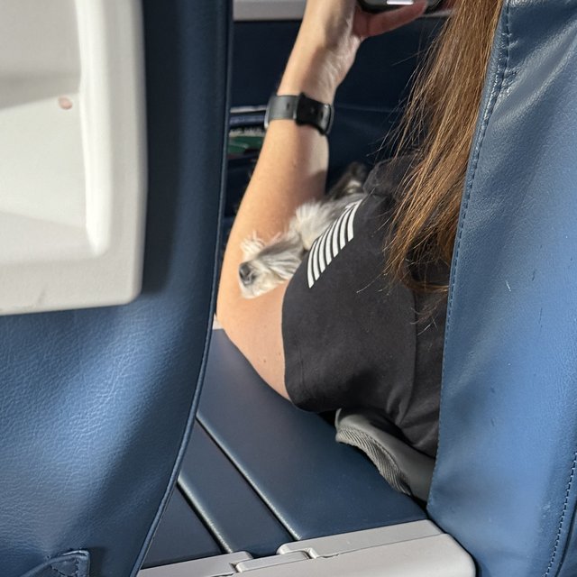 Speaking of pampered dogs, here’s one sitting in front of me in first class. The coach passengers have to file past, looking at a dog with a better seat than theirs.