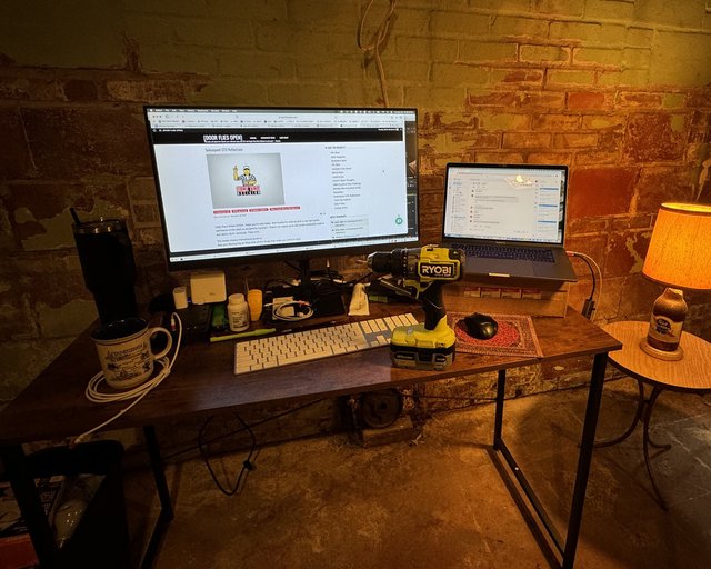 Bare bones so far, but I have a big desk, some lamps, and another monitor coming.