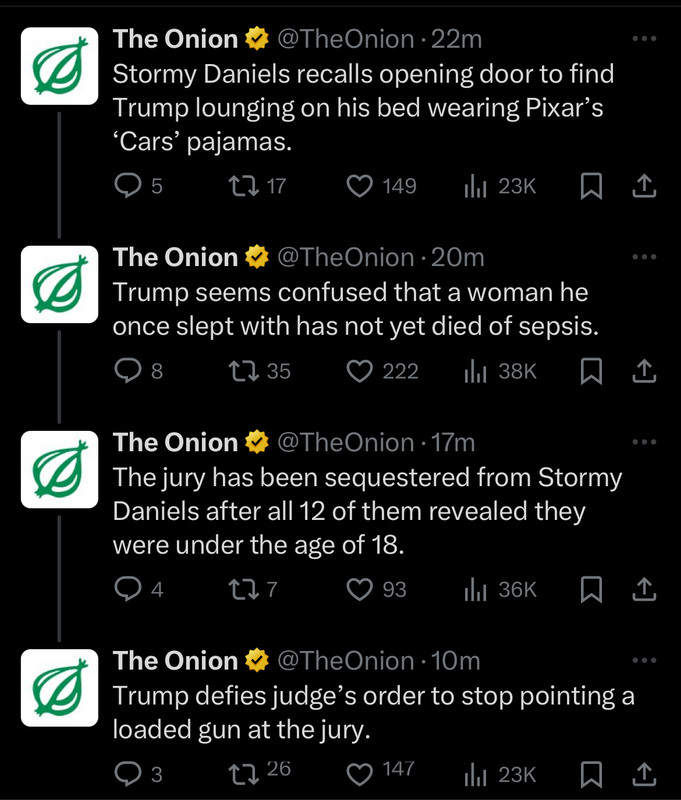 Jury is excused due to objection from defense attorneys about Trump finishing before technically being in contact with Daniels not being considered sex. If sustained, it will be the first time a development Trump was involved in was completed early and to Trump’s satisfaction.