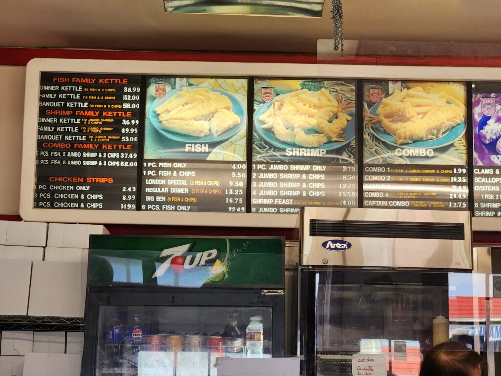 For the record they DO have a Combo Number 5 – with 5 fish and 5 shrimp – and you absolutely will get this stuck in your head reading it on the menu board.