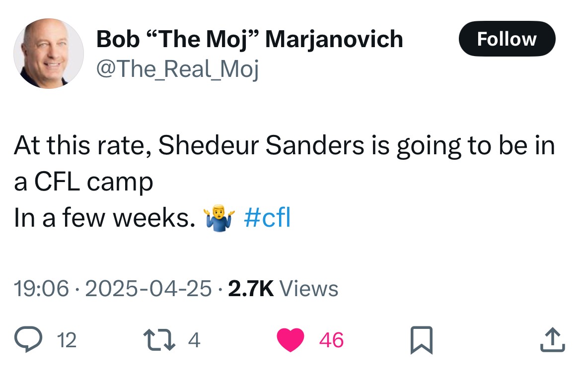 Evening. Anyone who takes Shadeur Sanders now is going to look smart. Either he fails and it’s defensible value or he’s super motivated and torches everyone.