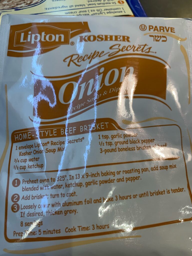 “It’s the recipe of our grandmothers and great-grandmothers, a holy tradition of our own,” said Helen Rosner of the New Yorker, and a brisket slow-roasted in liquid, a few vegetables, and Lipton onion soup mix is, for many American Jews, the very definition of the Passover table. Lipton started making dehydrated soup mixes in 1952, and it took no time at all for home cooks to figure out that all those dried onions, yeast extracts, and delicious glutamates could impart instant flavor to a casserole or roast.