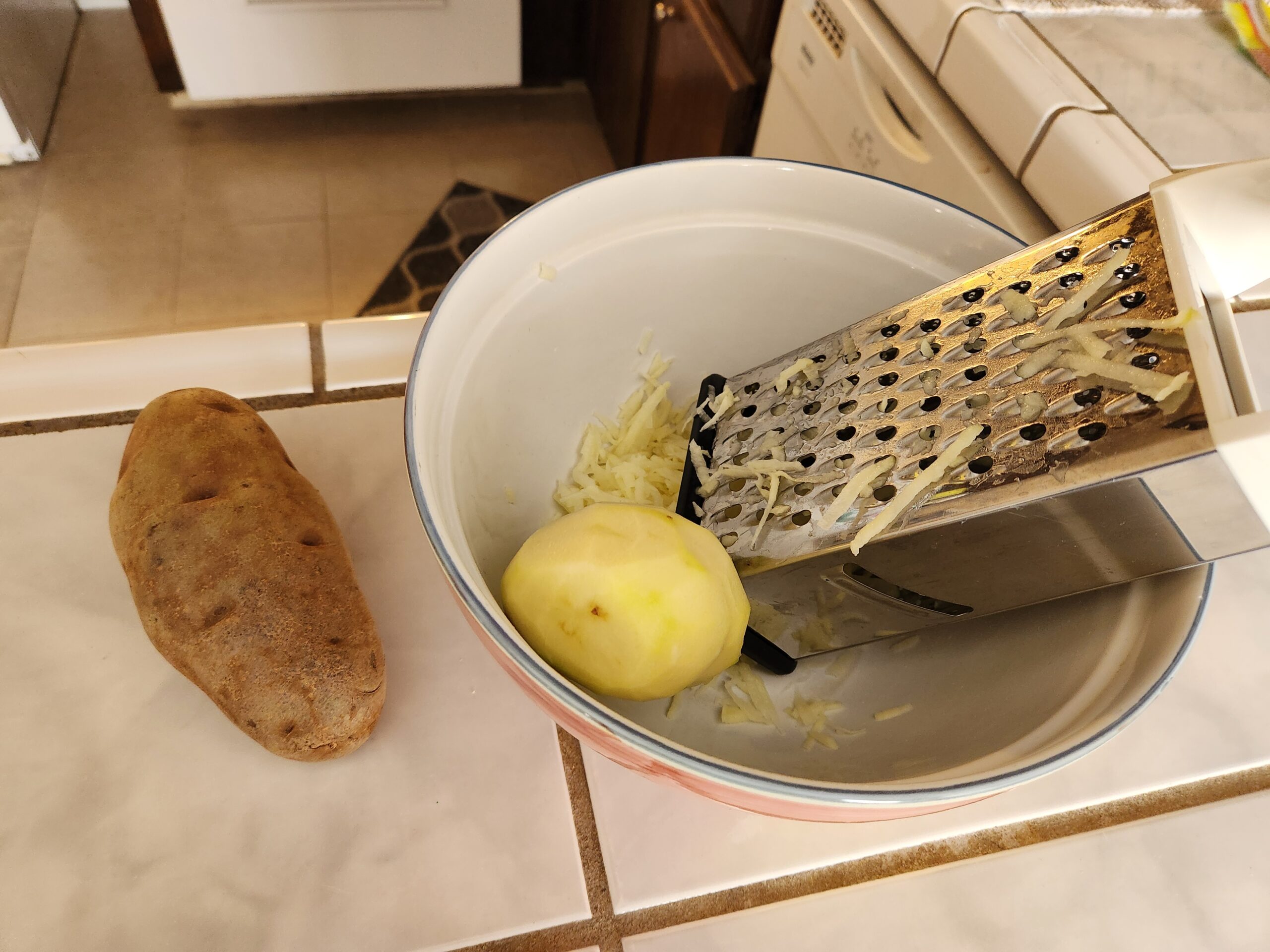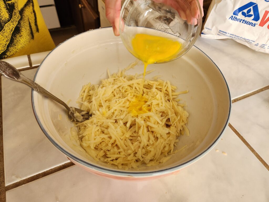 Peel and grate the potatoes.