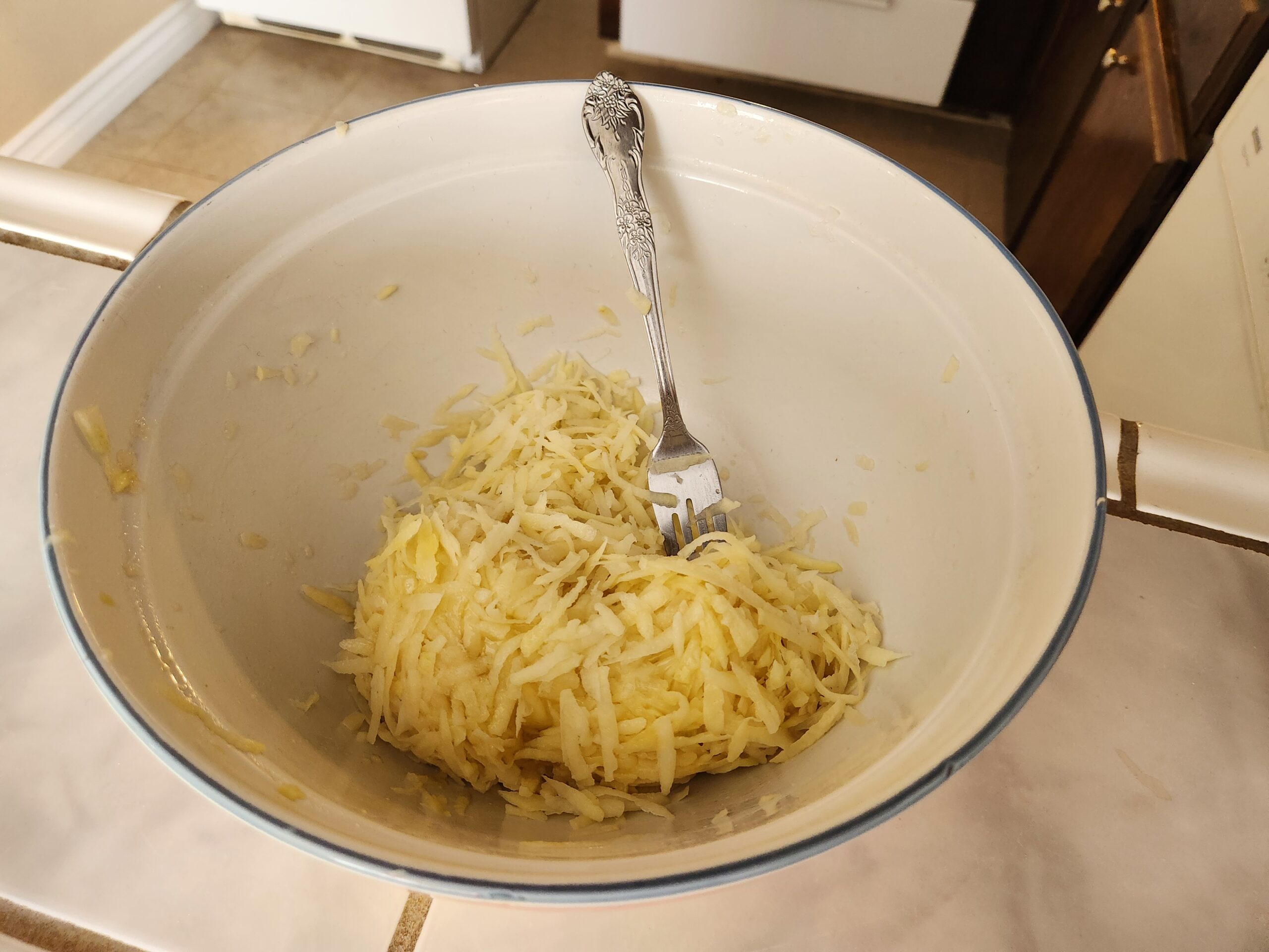 Squeeze all of the water out of the potatoes.
