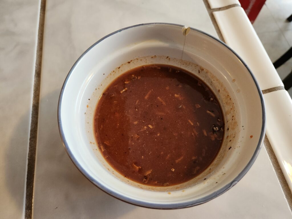 Take note of the cutting board. The soup mix plus the cooked fat from the brisket after cooking for three hours creates a juice substance that looks like it just WANTS to stain your fucking shirt. Maybe don’t wear white when slicing the brisket.