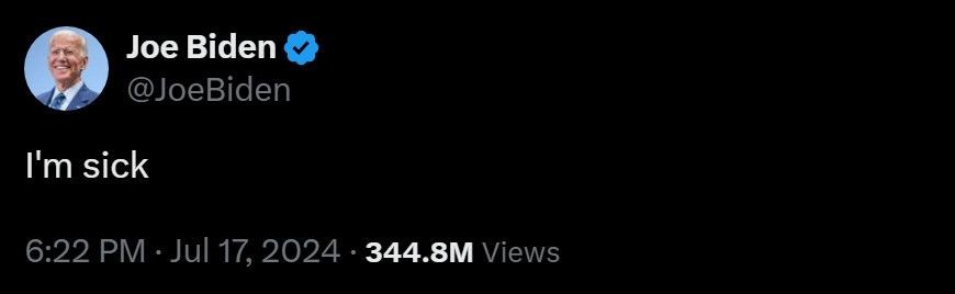 Seeing a lot of “geez imagine if Biden was president omg lol” takes online, and the response to that is “we’d be much better off than we are today and VP Harris would be ready to take over” so I think those takes can fuck right off. He was a very good president and thanks to a shit media we have fascism now. So kindly fuck off with any take other than “I hope for the best for Biden.”