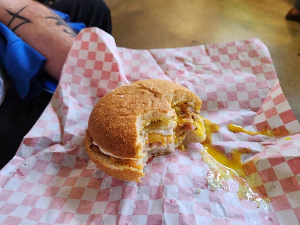 Since I’ve just now had half of a pea-meal bacon sandwich followed by half of this monster I was pretty close to full for the early part of the day.