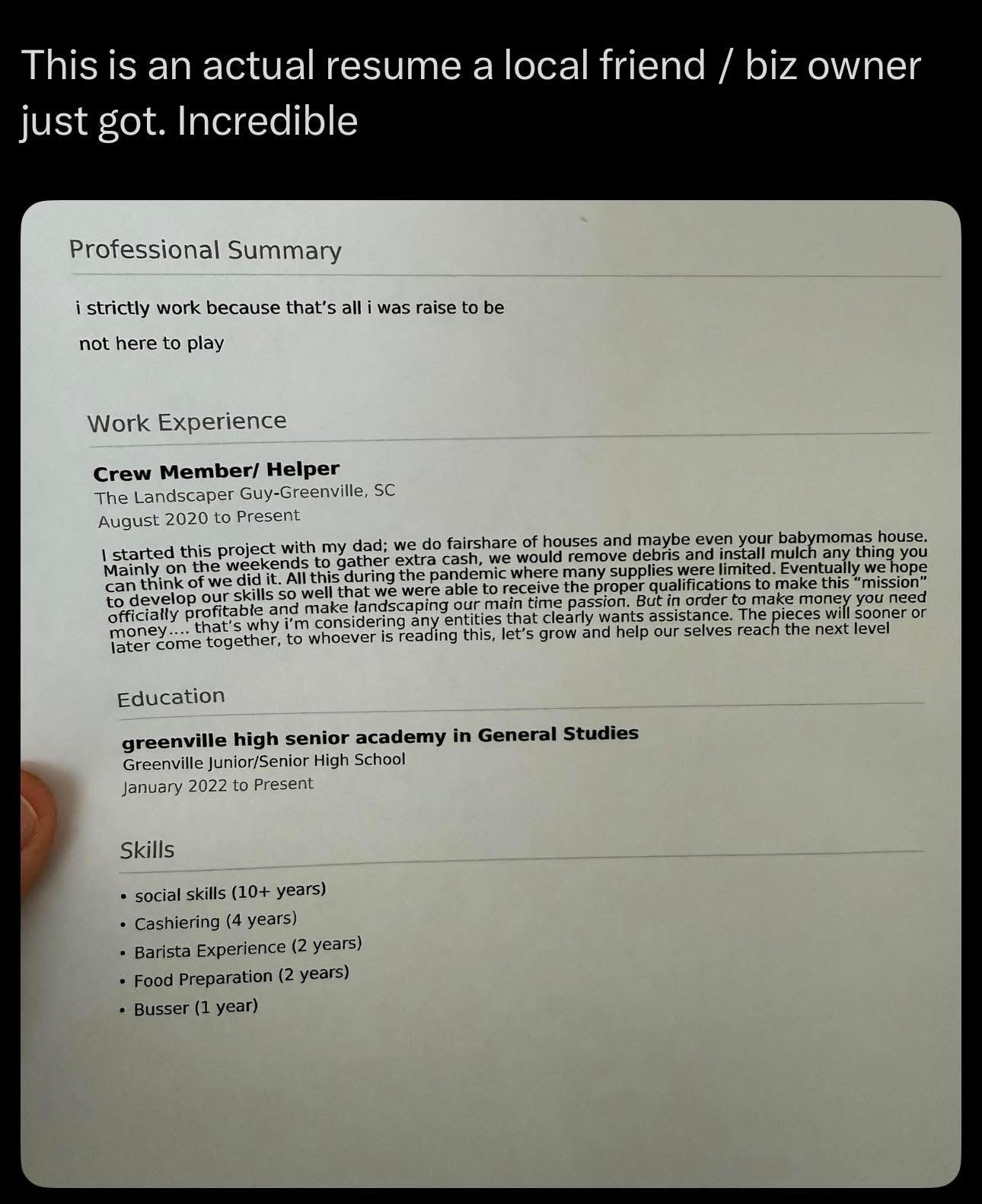 “Your babymomas house.” Hire this man immediately, he has C Suite potential!
