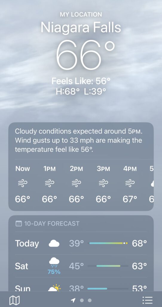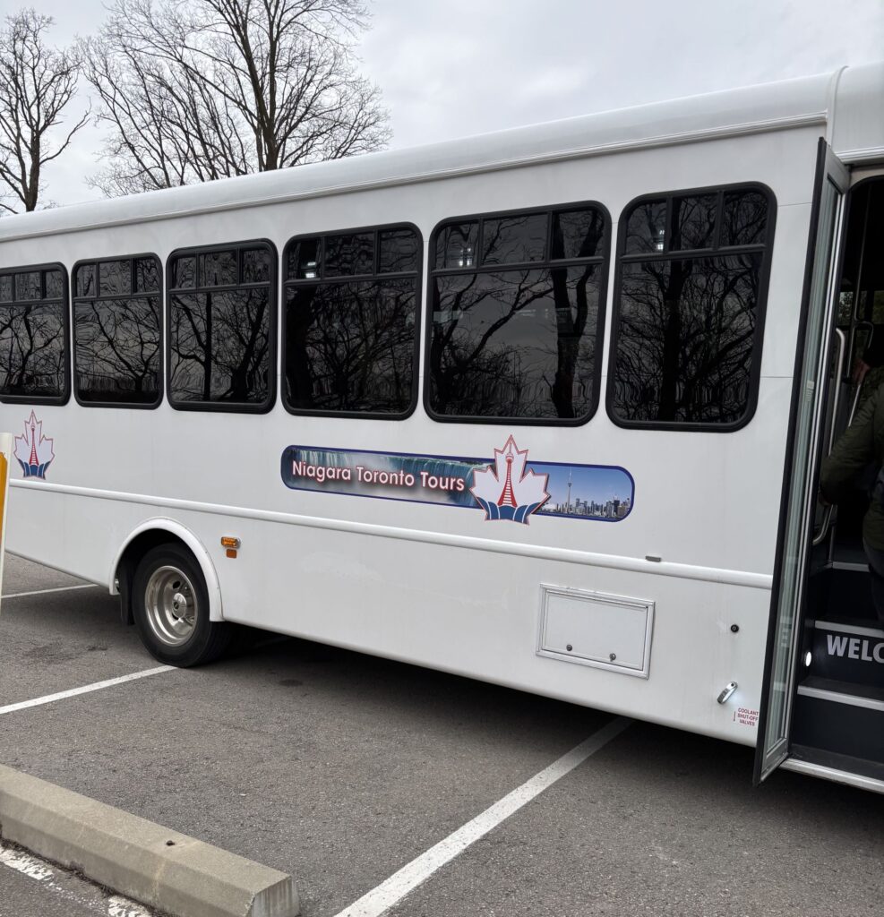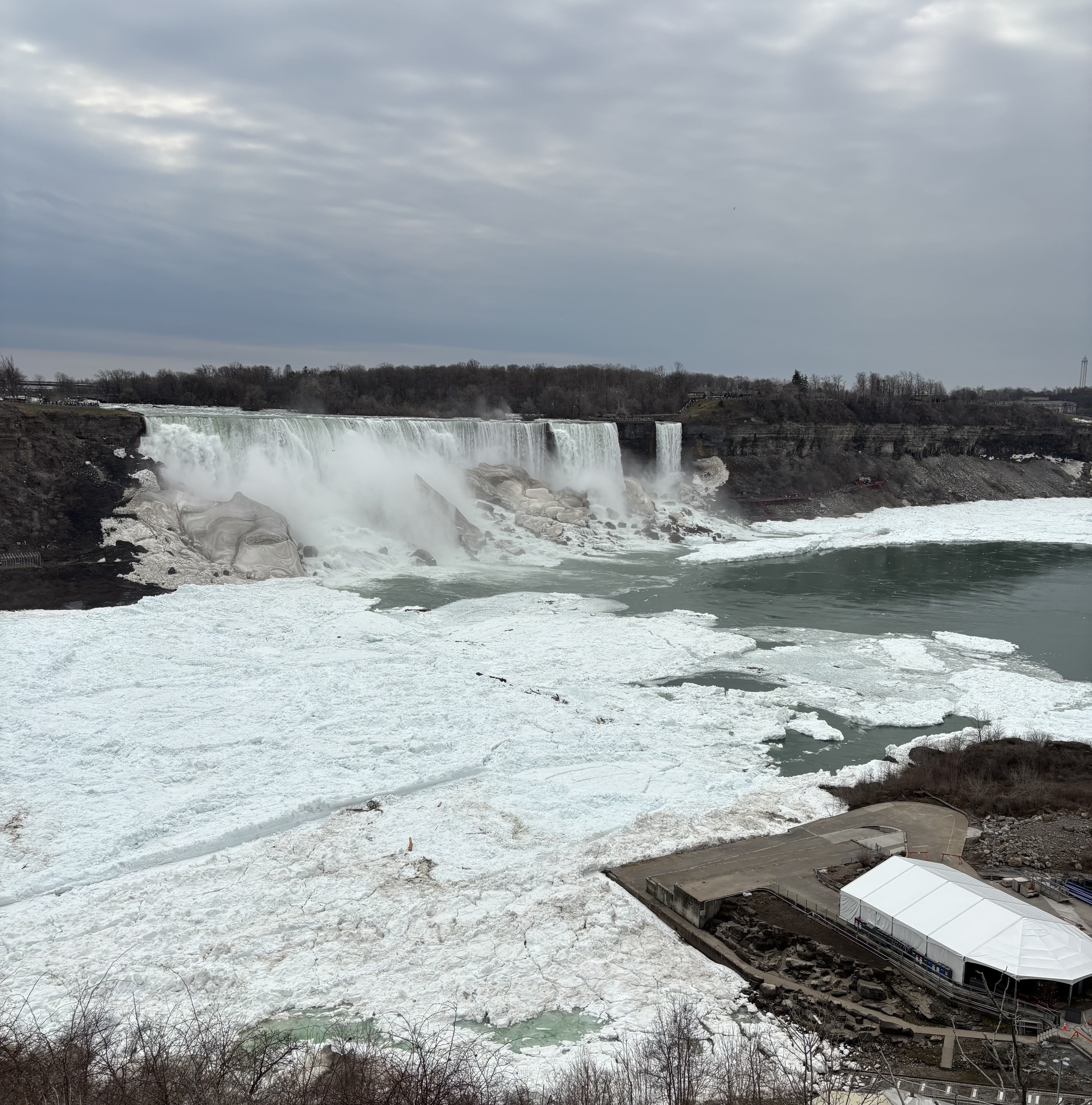We seemed to have landed at a most inauspicious time as the driver has informed all that during his 10 years of service he had NEVER seen this much ice so late in the year. Usually the boat tours under the falls commence in late March. This year?