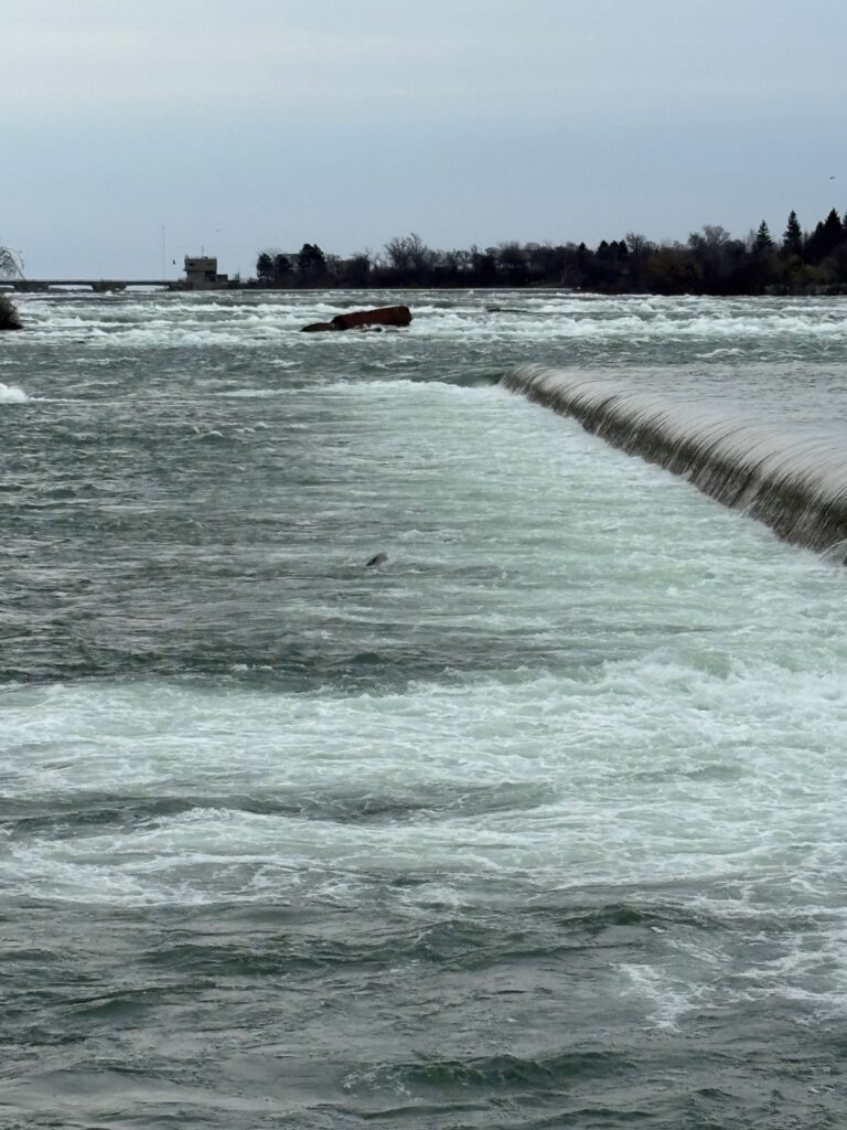 Off in the distance you can see the remains of a shipwreck from the 40’s it moves a few feet each year until one day it will tumble over the falls.