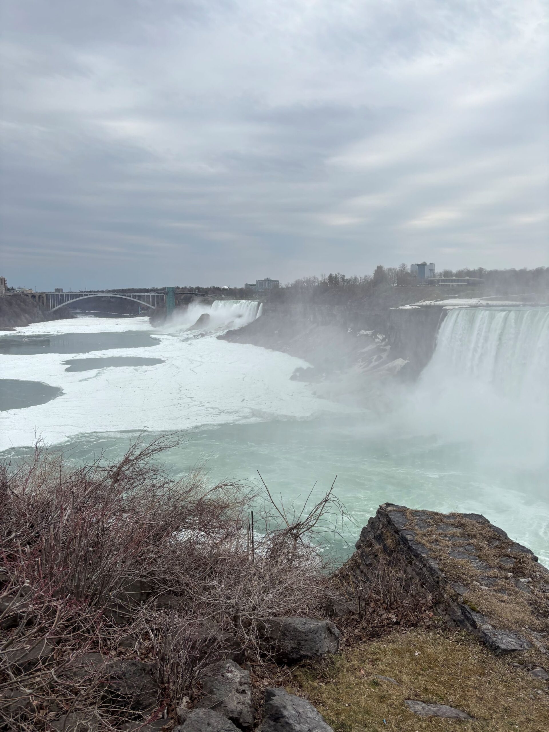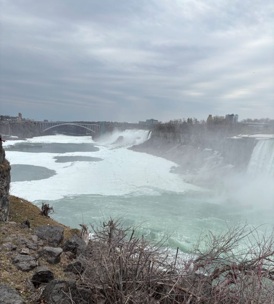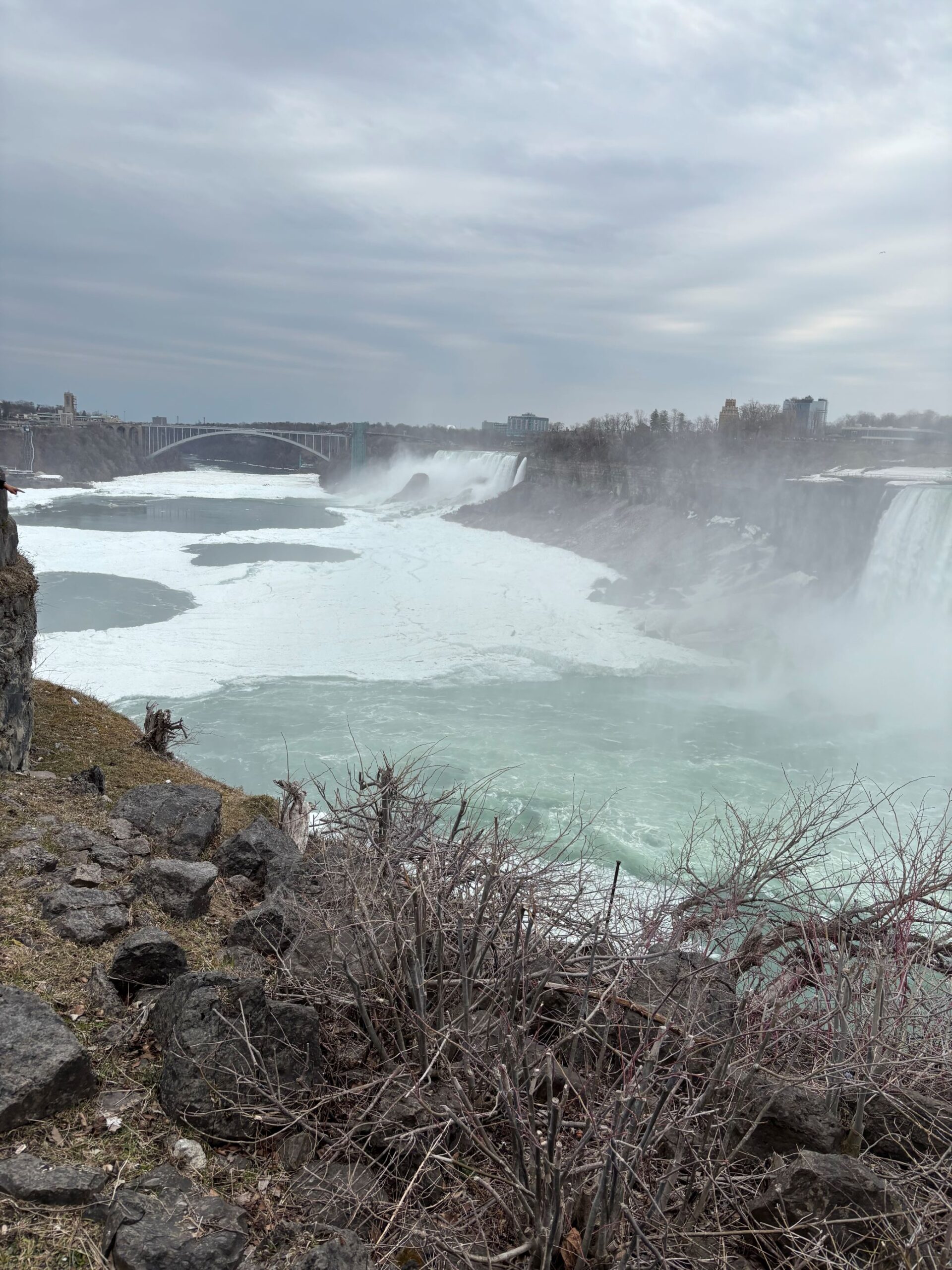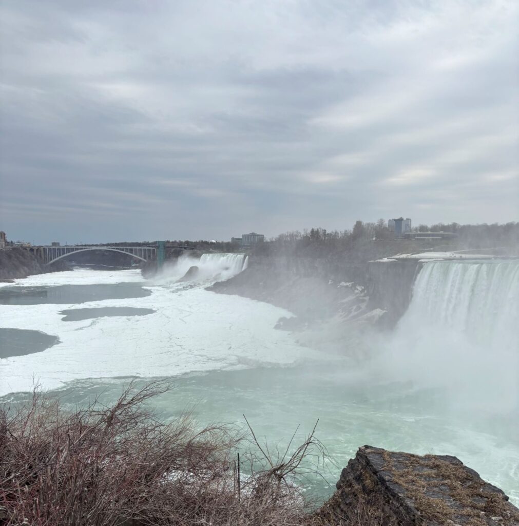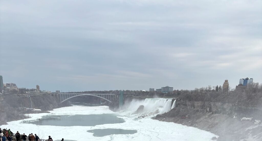 From left to right. Rainbow Bridge. Next the “American Falls” with Buffalo in the background. On my right is the Canadian “Horseshoe Falls.”