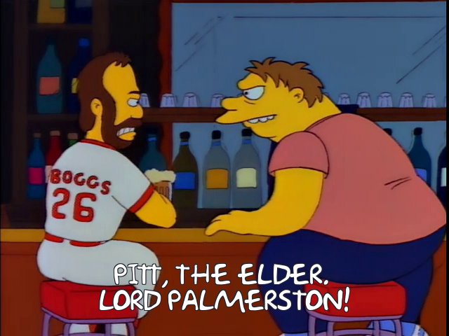 With the second pick I will take Wade Boggs as himself, because without him we would not have the “Lord Palmerston! PITT. THE. ELDER” bar debate that I probably quote more than anything else from The Simpsons.