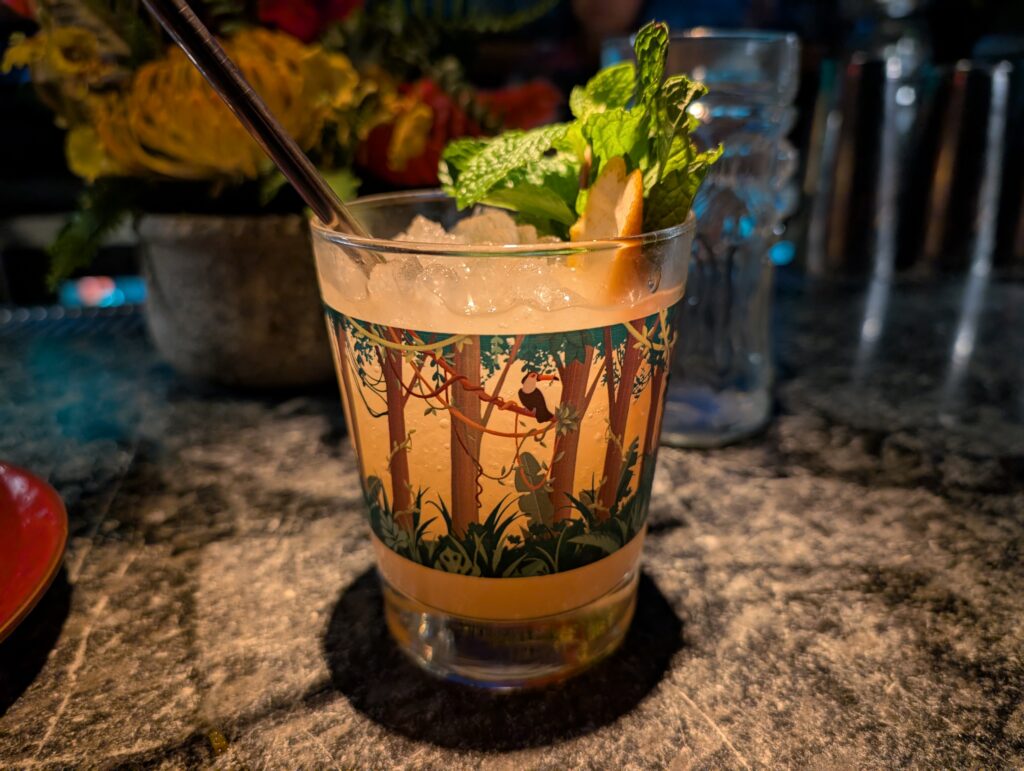 The finish is a mixture of the rums and the nut syrup/liqueurs. It’s refreshing and a nice deviation on a tiki drink that is still in the ballpark of a mai tai, but just different enough to be it’s own distinct thing. My friend is still tweaking the base still, and he’s thinking about making is winter seasonal and adding it to the menu then. I’m very much looking forward to trying that version and I offer myself as tribute to taste test the prototypes before he nails the final recipe then. .