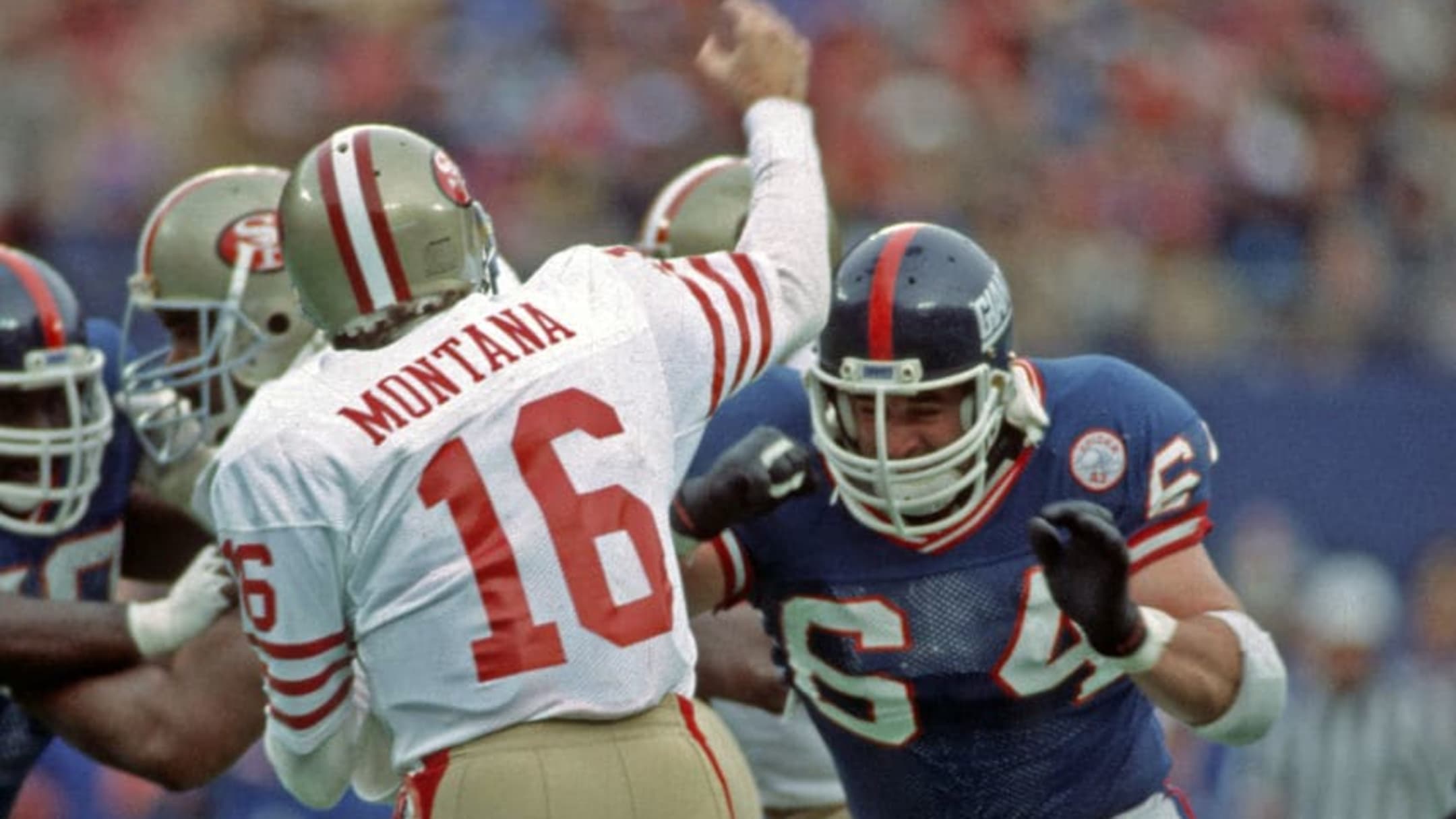 Jim Burt knocks Montana out of the game in 1986 playoffs.