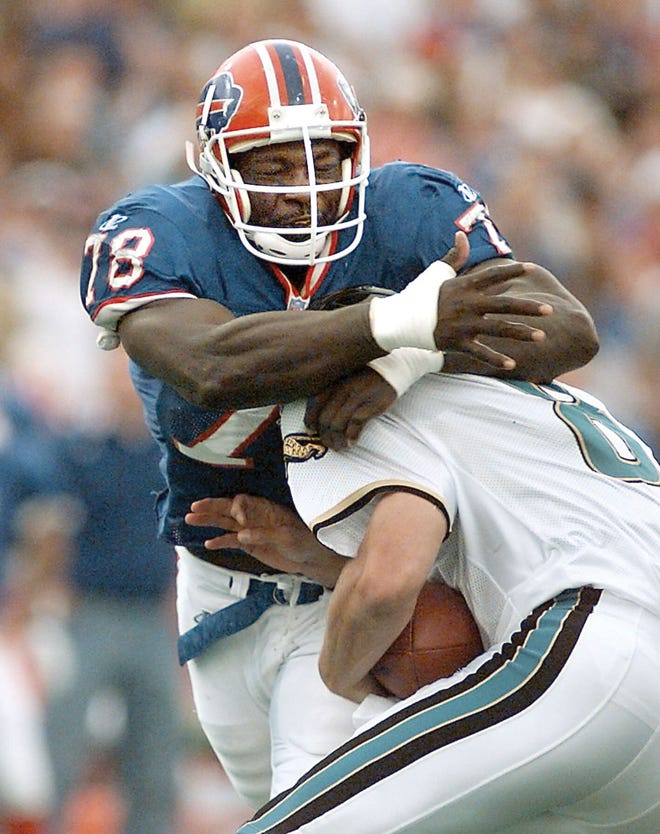 My favorite end/tackle ever-John Randle. He was undrafted because was 6’1″, 245 coming out of a small college but what a motor that guy had and speed and strength and leverage. Ended his career as a 6 time All Pro with 137.5 sacks, what a player!