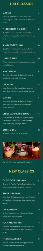 Second, Donn would constantly tinker with the recipes and what was used at one location was different from another. He was a master mixologist before that was a thing. He knew exactly how flavours worked together and how proportions made a huge difference in the final outcome. Thus, it was extremely difficult to replicate his recipes. It took the author of Sippin’ Safari decades to figure out how to recreate his drinks.