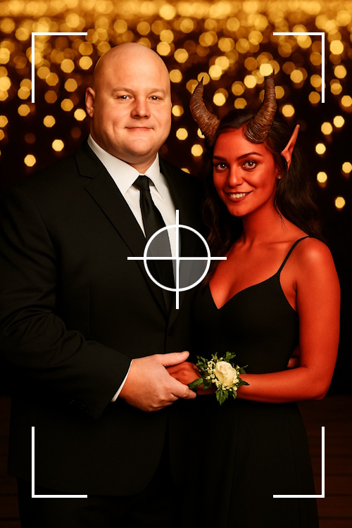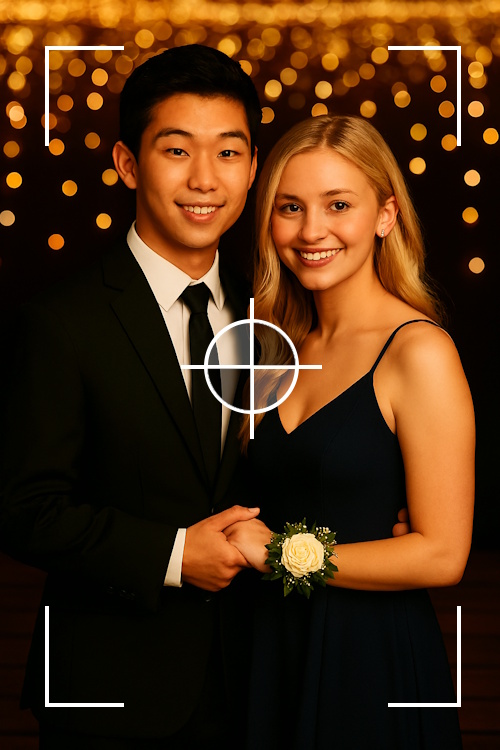 HUNTER RENFROW and RACHEL DUNBARTON step into the camera frame and the PHOTOGRAPHER snaps their picture.