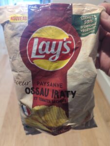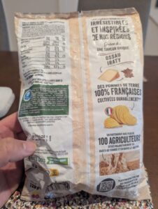 Whilst in Orleans I picked up a bag of chips crisps thinly sliced fried potatoes that had a picture of cheese on them and some words I don’t know.