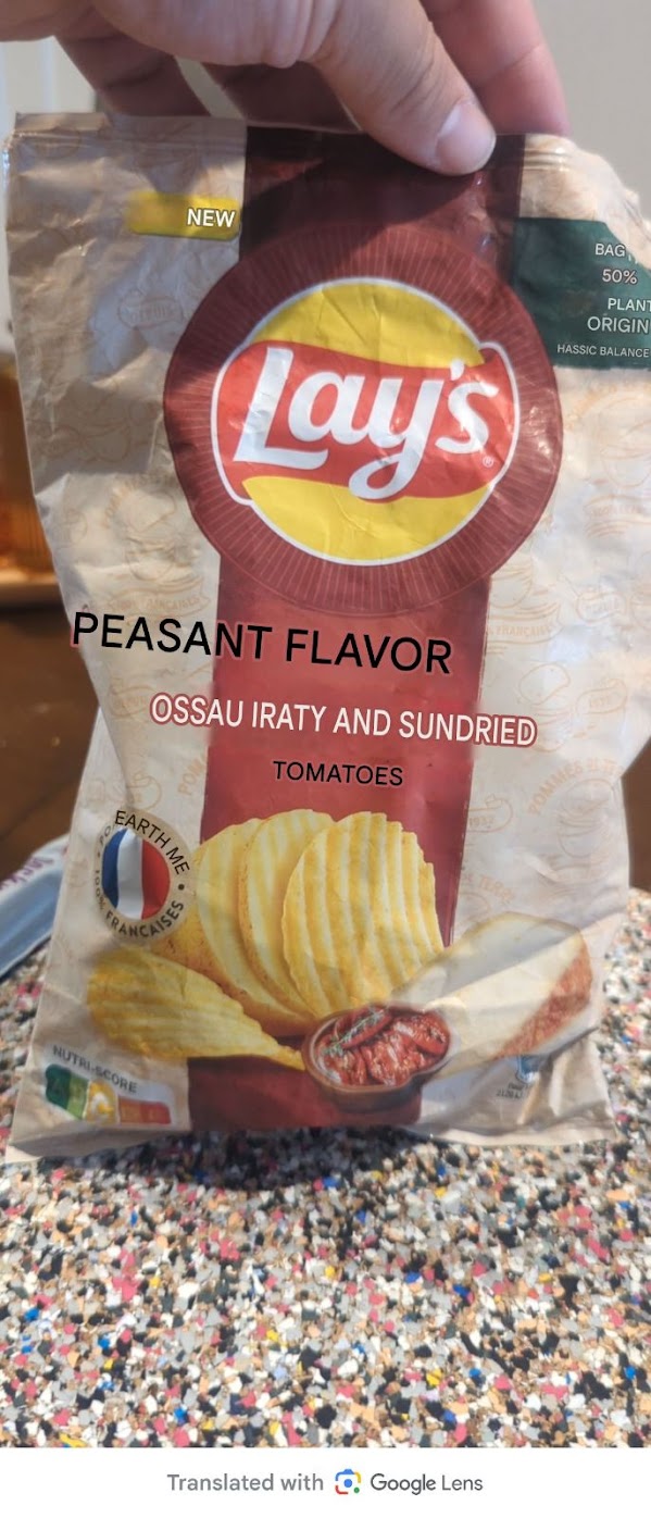 Peasant Flavor. And then you have to search to find out that Ossau Iraty is a cheese. So sundried tomatoes and cheese. If I had to guess what peasants taste like….that’s probably not what I would come up with. Does the back of the bag teach us anything else?