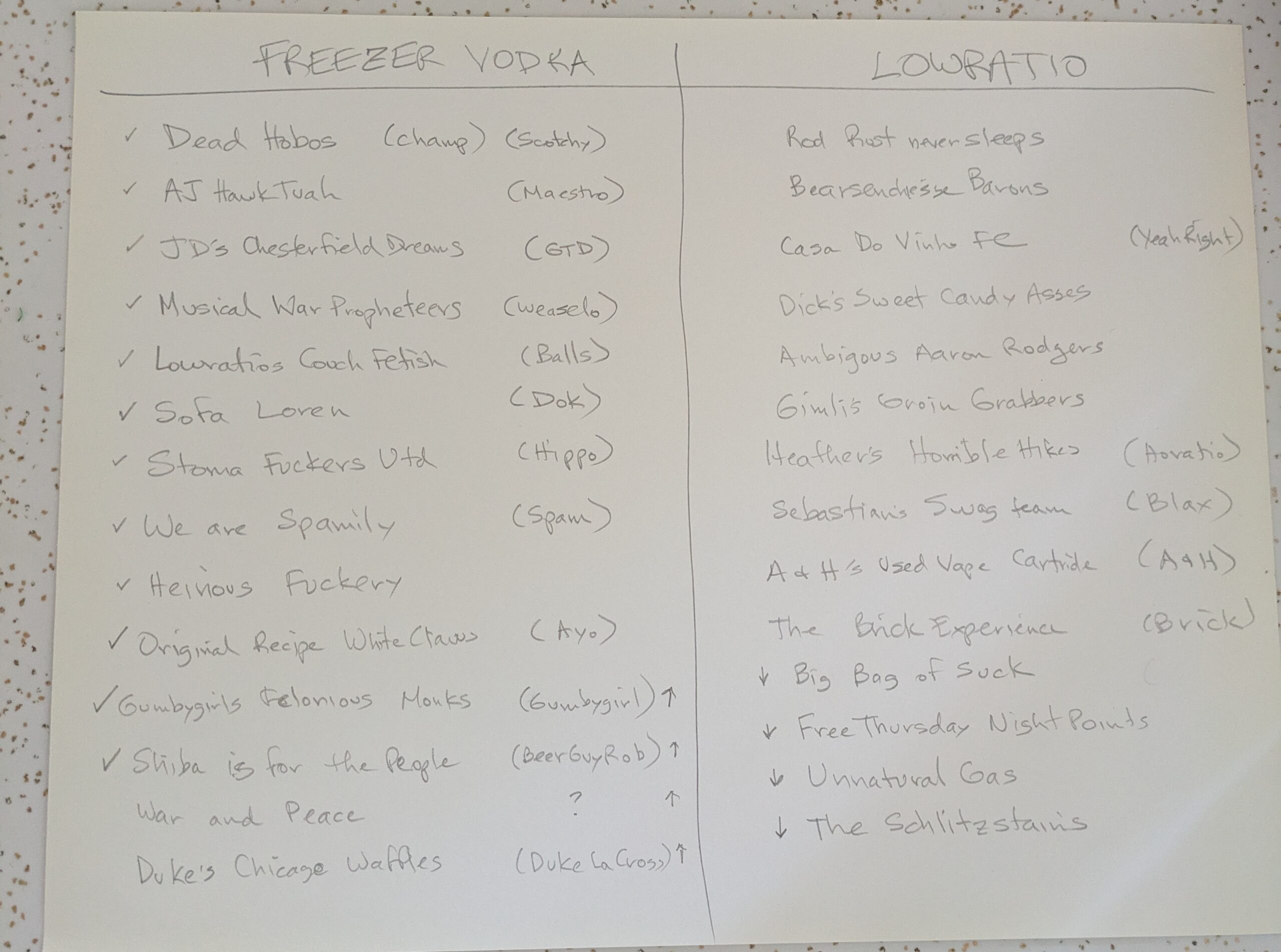I changed my name, I’m Tush Pushy Galore in the Freezer Vodka league