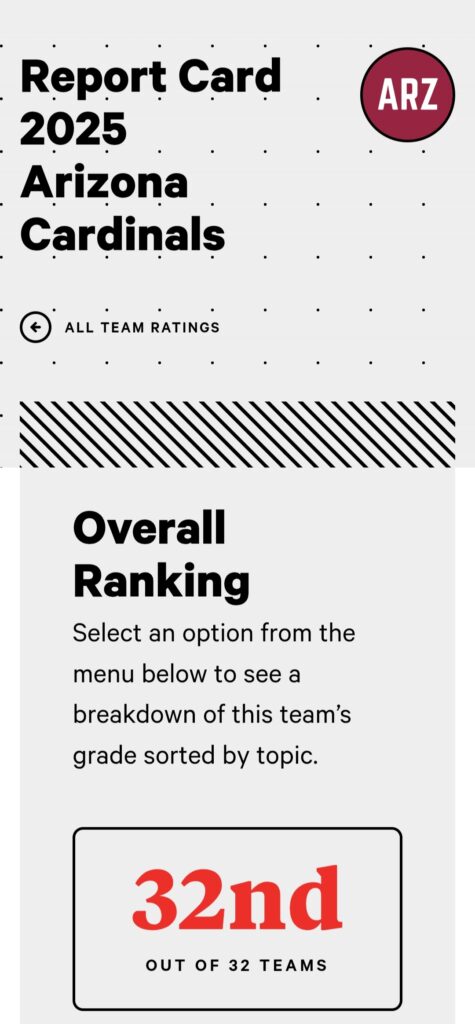 When we last left off with this NFL ownership side quest that is Mike Bidwill’s tenure as leader of the Arizona Cardinals, the 2024 Edition was actually exiting a late-November bye with the NFC West lead! As will be mentioned at least three other times during these team previews, the NFC West was underwhelming last year — and Arizona, relying on stout defensive schemes to go perfect on the soft spots early in their schedule, simply seemed to manage the injury bug best of anyone in the division.