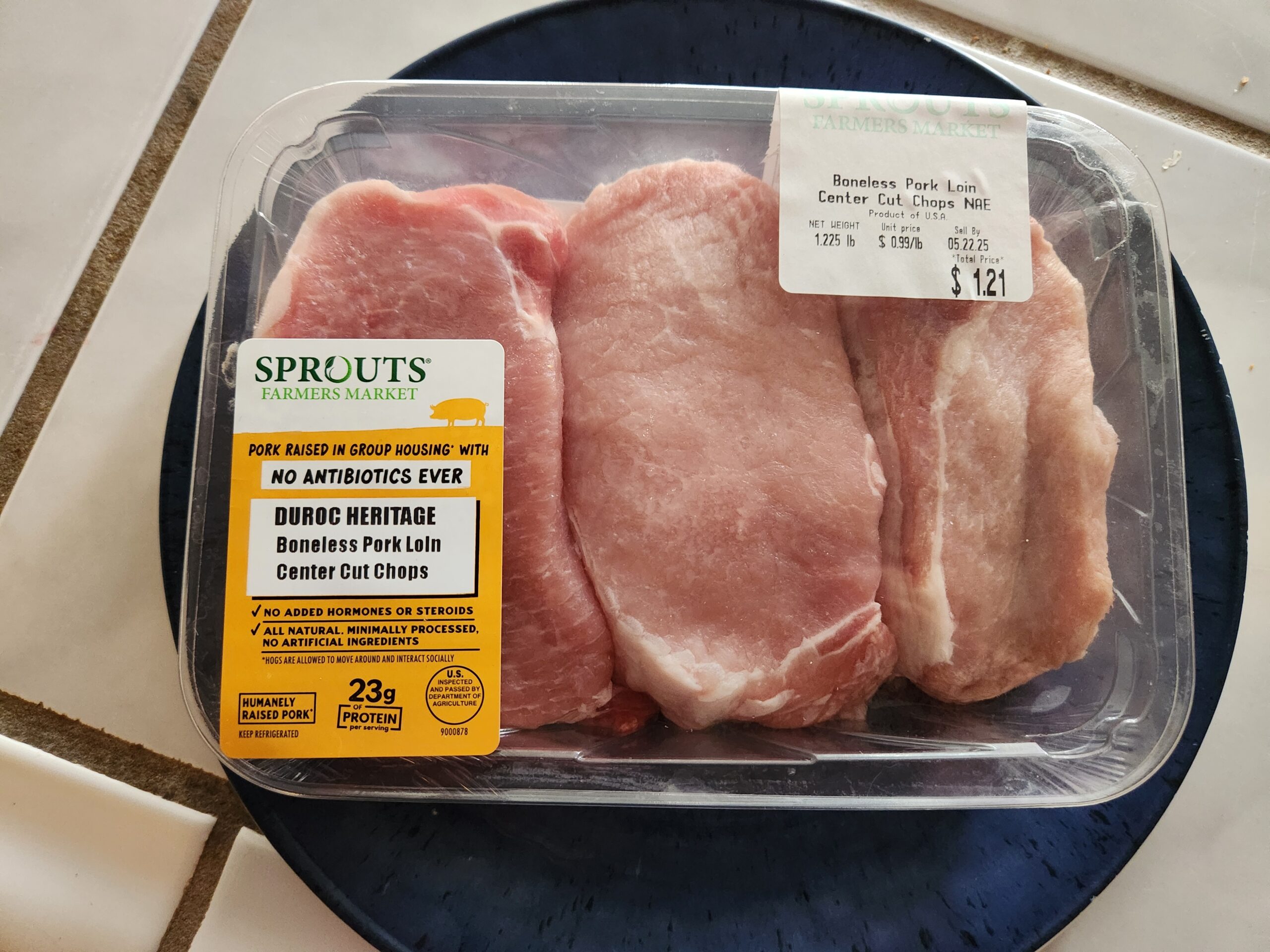 Three for one day, looks awesome and thank you for this and the whole year. I love pork chops. $1.21 is insane. I was happy to get 6 for $10 CAD. How can it be so cheap. Do the pigs butcher themselves?