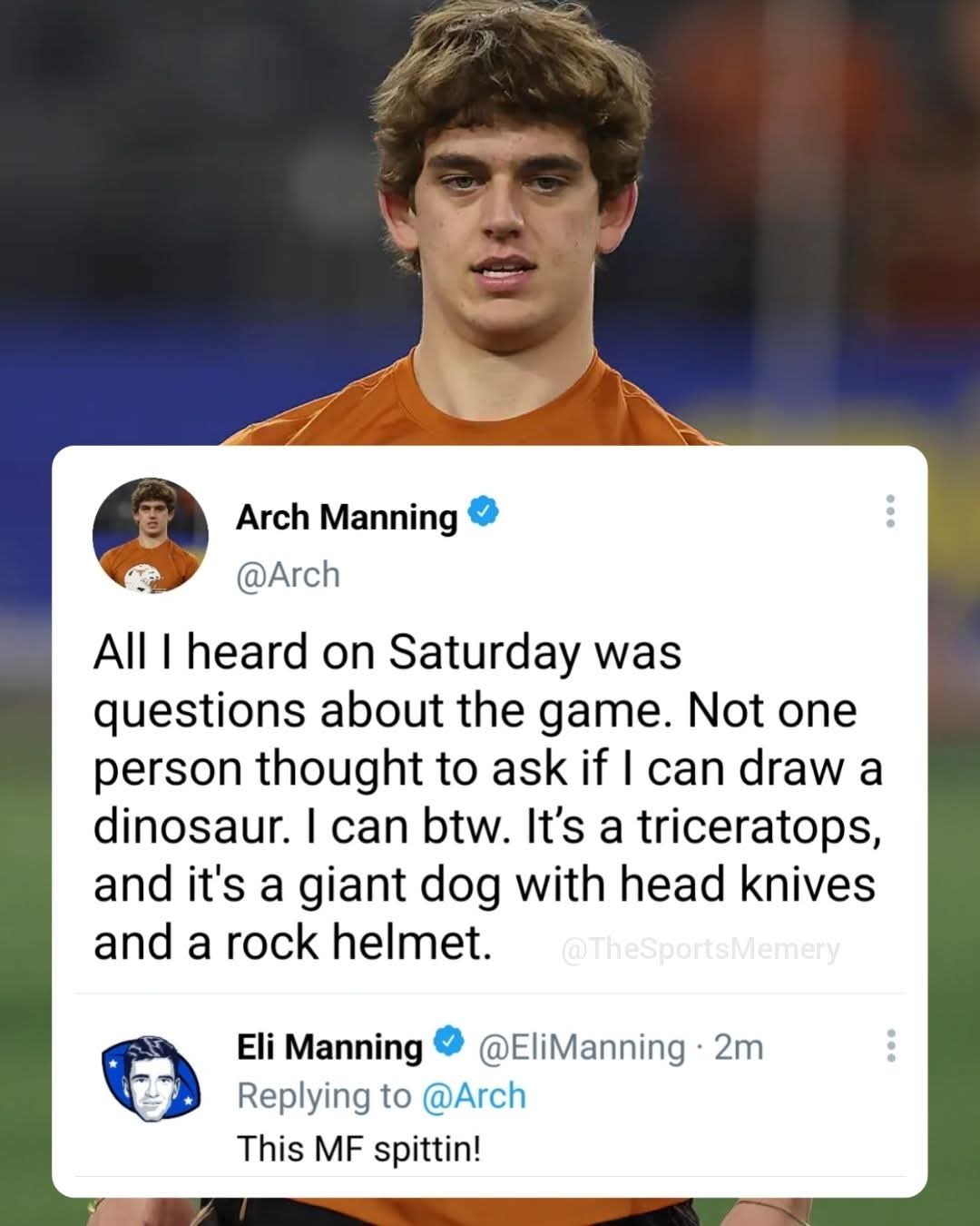 I really want that exchange to be real. If Arch takes after his Uncle Eli, that would be the greatest thing ever!