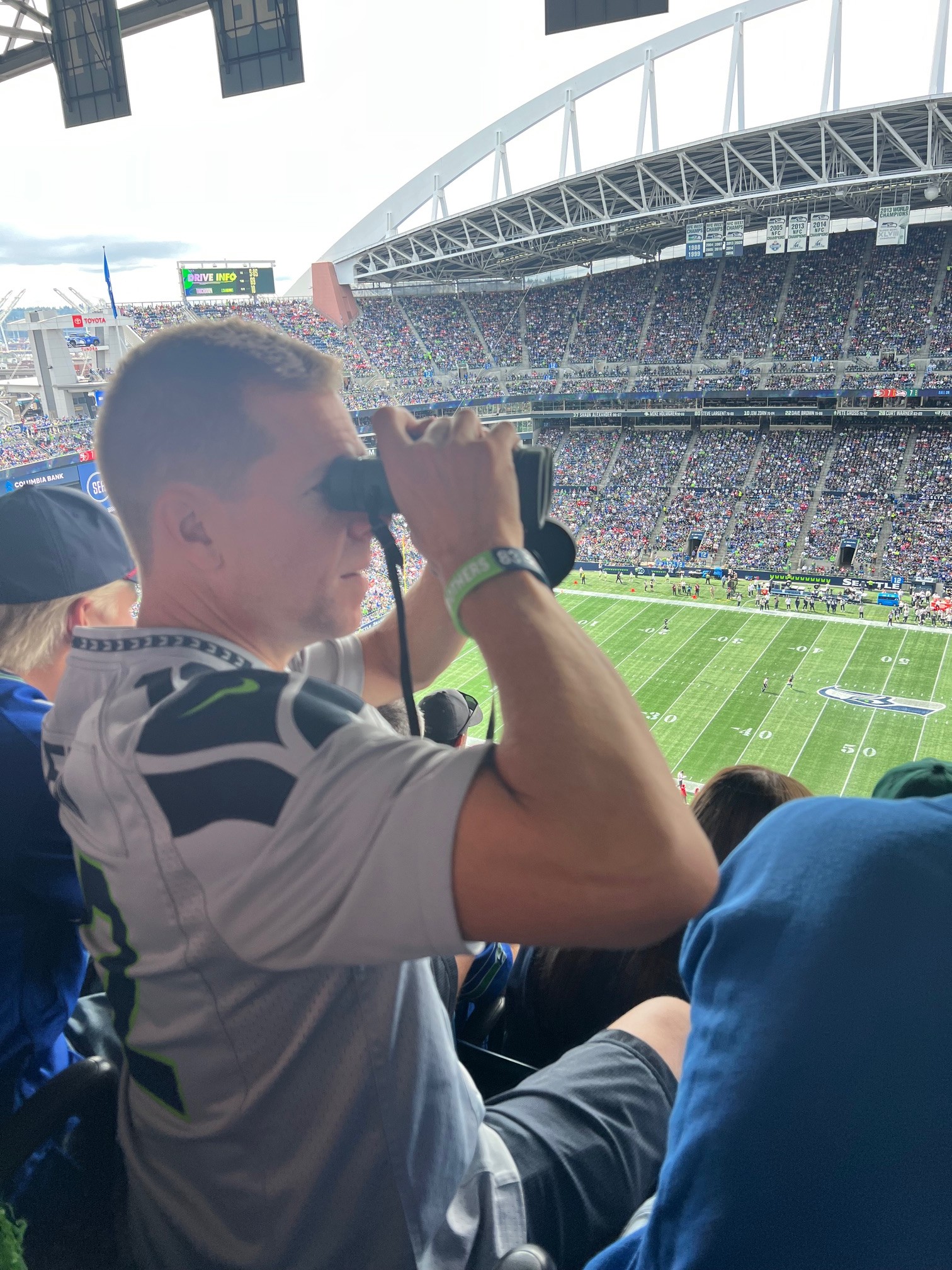 Another update – The guy in front of us is using binoculars to not watch the game and I REALLY want to ask how close he’s allowed near schools.