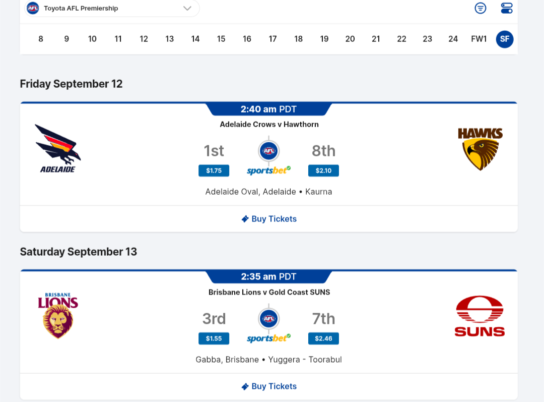 If you are a member of an AFL club or you got a Watch AFL membership, you should be able to watch every AFL and AFLW game, including replays. Game times vary between Australian afternoon and evening, which actually makes it easier for us in North America to watch as the games can be seeing in the evenings on Pacific Time and early mornings on Eastern time.