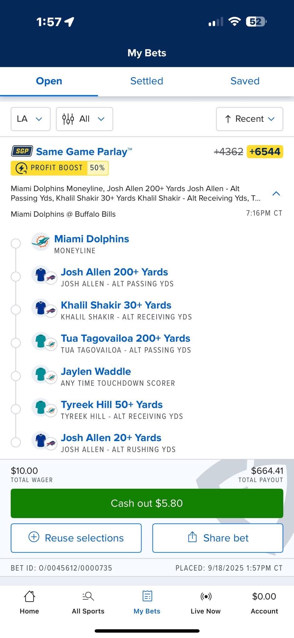 Aw man, the O/U on Tua rushing yards was 1.5 and I almost took the over