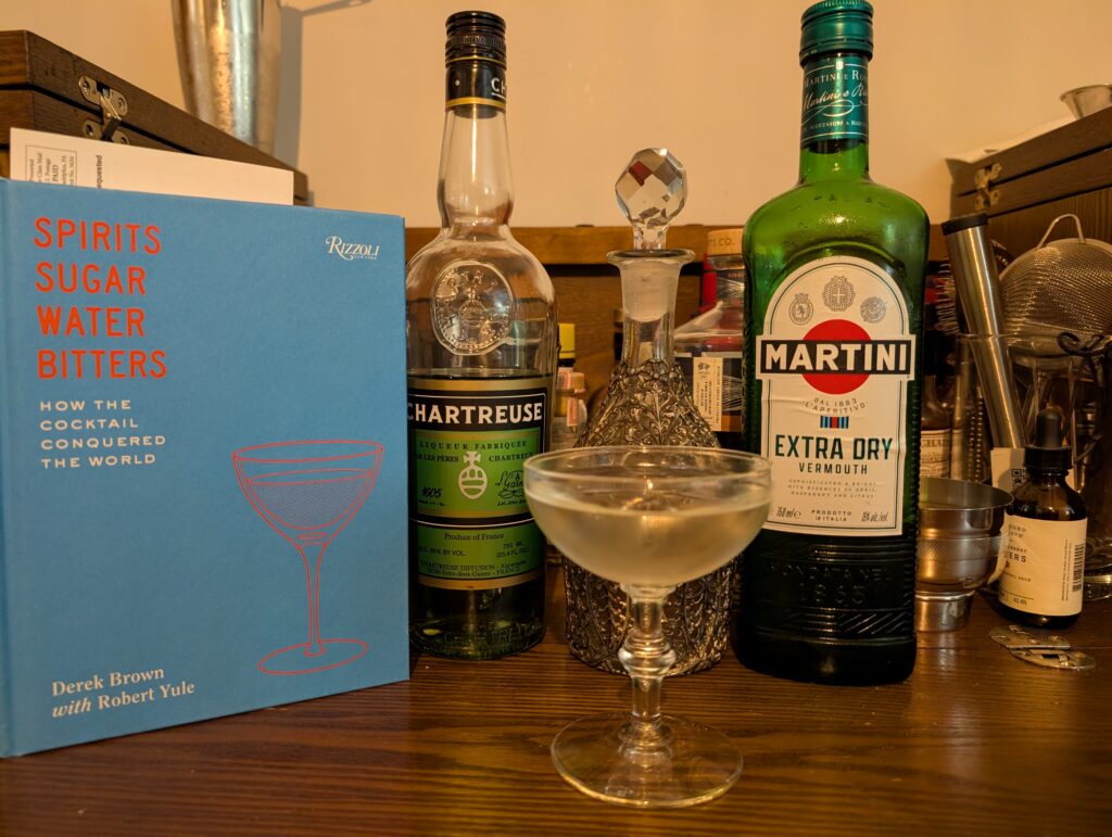 Now onto upbeat things. It is Friday after all, and I’m looking forward to relaxing a little bit this weekend, and what better way to go into the weekend than with a new cocktail to try! I chose to use a book I’ve often overlooked called Spirits Sugar Water Bitters: How the Cocktail Conquered the World. It’s an excellent book that goes into the history of cocktails and pairs each chapter with recipes originating from the time period being discussed. The Steady Cocktail (original) is featured in the Golden Age (1860s-1910s). In that period classic cocktails are discussed, such as the Manhattan, Martinez, and the Martini, of which the Steady is a derivative of. I’m interested in the addition of the green chartreuse to see what it brings to the drink