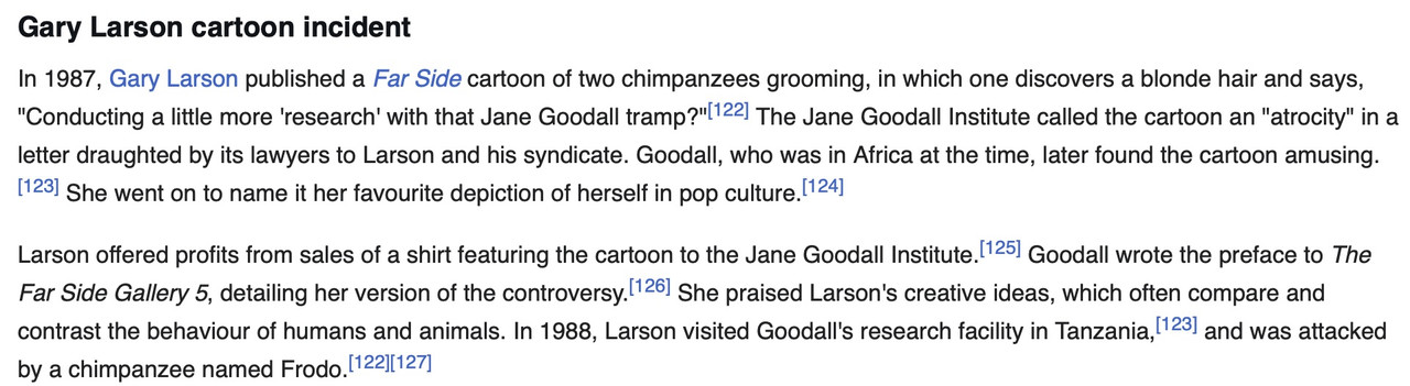 An excerpt from Jane Goodall’s will: “Please don’t monkey around with my corpse.”