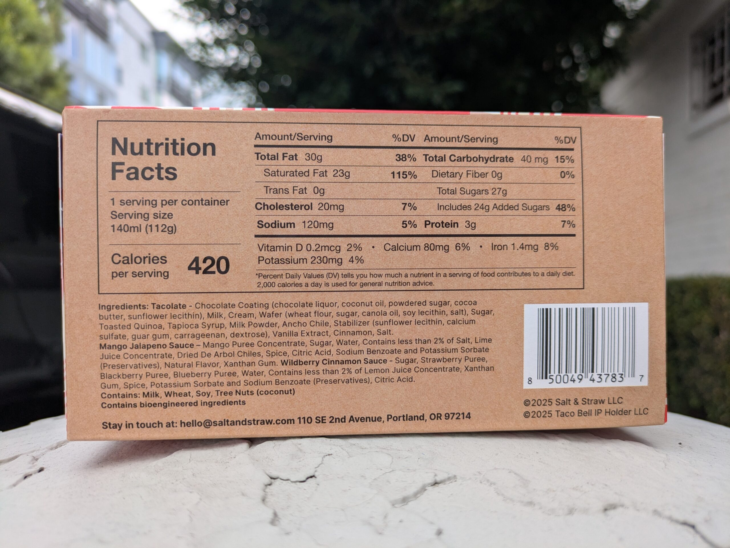 Bottom Line: If you have a Salt & Straw location near you, I would recommend trying it. If you are a regular Salt & Straw customer, you will not think twice about the cost. I, being a regular Taco Bell customer, think it’s probably more of a once-in-a-while kinda expensive treat. But yeah, it’s really good!