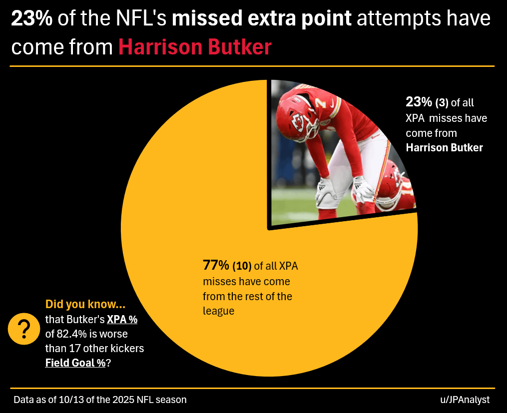 Maybe the Chiefs should think about signing Tyler Robinson; he hasn’t missed once.