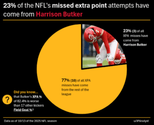 Maybe the Chiefs should think about signing Tyler Robinson; he hasn’t missed once.