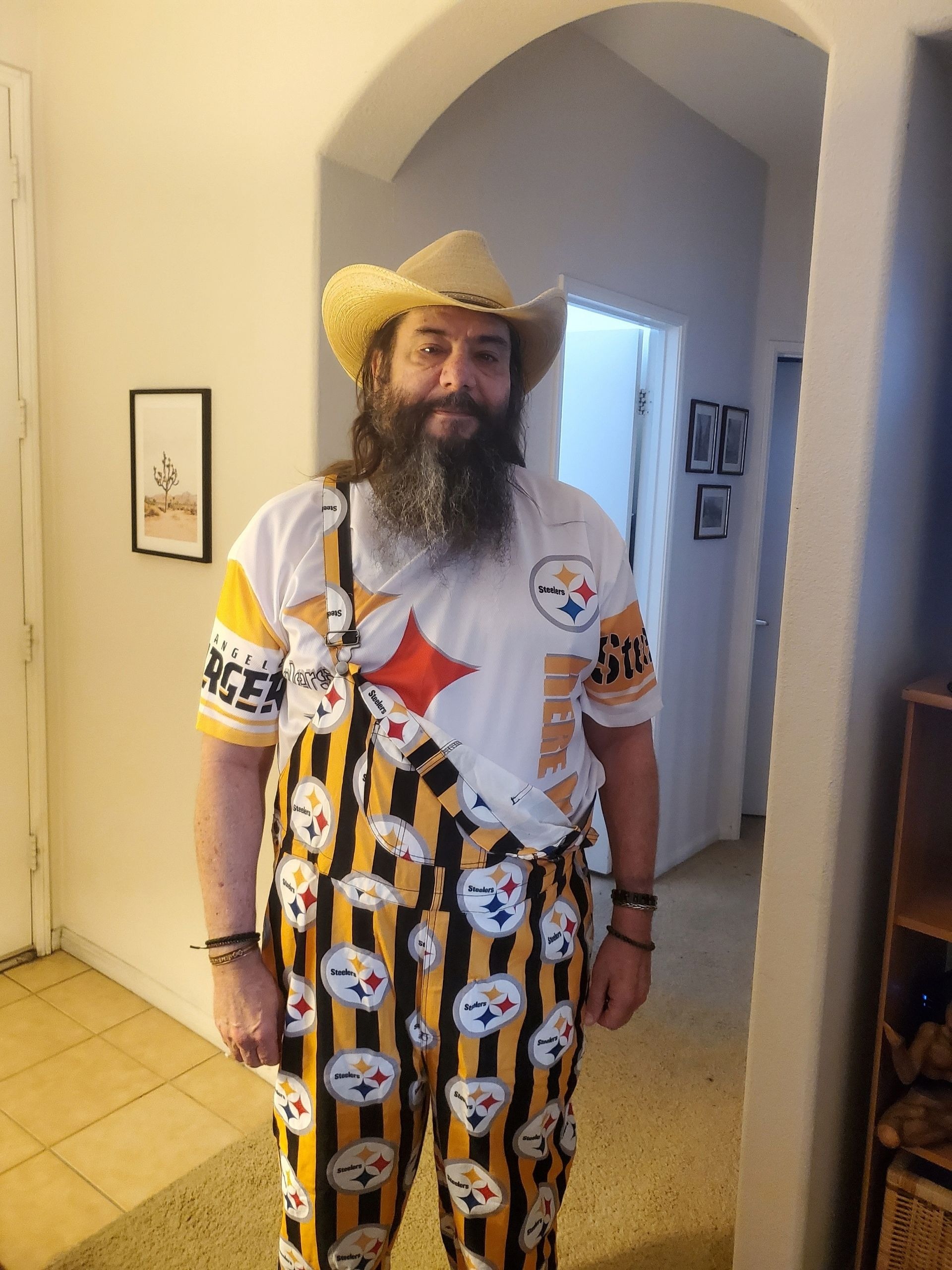 Ooooooh! Let me see if I can find a picture of Gumby in his Steelers overalls. He was a stunner, my man!