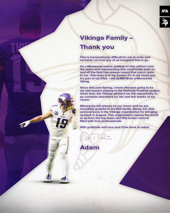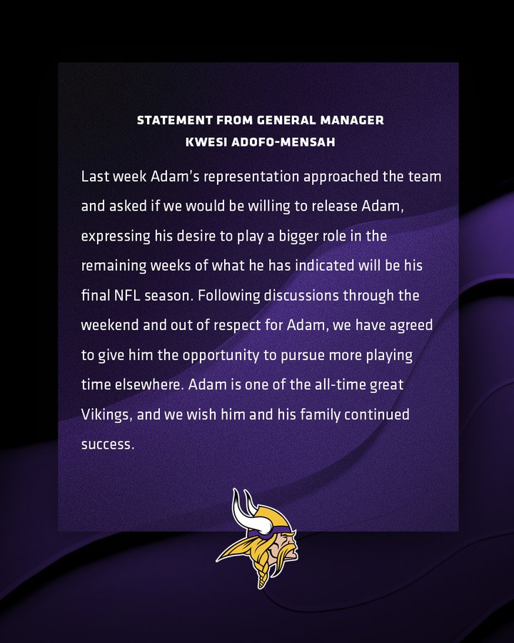 who finished with a career low two yards (thank god I don’t have a fantasy team this year), and it’s led Adam Thielen to ask for his release.