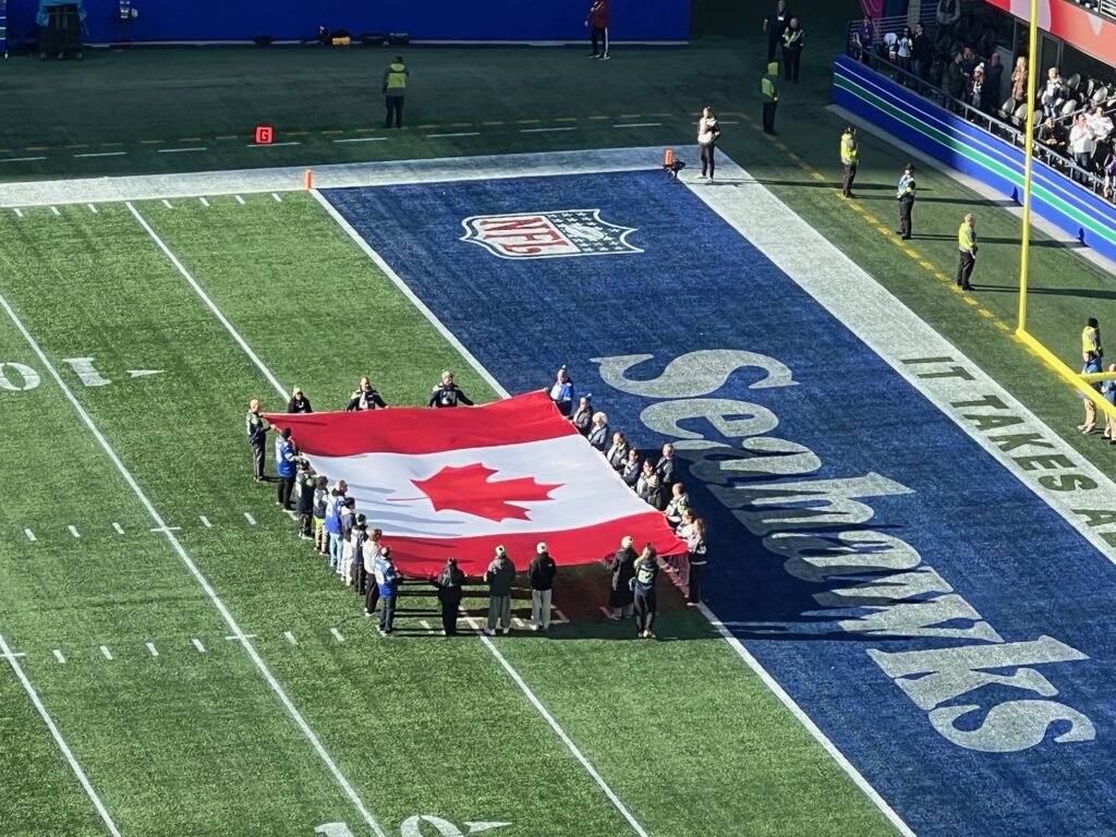 They called it a “12s North Celebration”, both as a salute to the Canadian season ticket holders and a plea for tourists to start visiting the US again. They even offered free bus rides down to the game, something I saw as a trap. Singing the anthem also seemed like a way for the MAGA snitches in the crowd to get some of that rat line bounty. But since they did it WAY before the crowd had even really seated themselves, no one really seemed to mind, even if BeerBrother and I belted out the bilingual version.