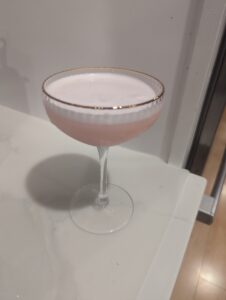 Anyhoodles, (prior to writing this) I had some raspberries that were going to go to waste if I left them in the fridge before one of my (other) flights. Perfect since we’ve already covered cranberries and snozzberries remain out of reach. With the surplus raspberries I decided to whip up some raspberry syrup and make a clover club! What a great idea knowing Sharky would be exploring UK bars and I’d be tapping in soon enough. But wait, a quick little search of DFO showed….Sharkbait did the Clover Club for COTW way back in 2020.