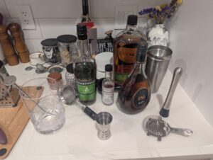 In addition to this not being my best effort, repeating isn’t really in the spirit of substituting, so let’s try something new! And so new that it requires a bit of innovation. Given that I’ve already shared a cocktail failure, I feel no shame in telling you that I found this next idea by searching for raspberry syrup in the cocktails subreddit. I looked at a few options but saw one particular comment about how raspberry went well with Green Chartreuse (wonder if I have any of that lying around) and that focused the search. Eventually I decided to roll with some Internet rando’s raspberry riff on a Sazerac. (You’ll have to scroll down and he didn’t include specs but someone replying did so let’s roll with that):