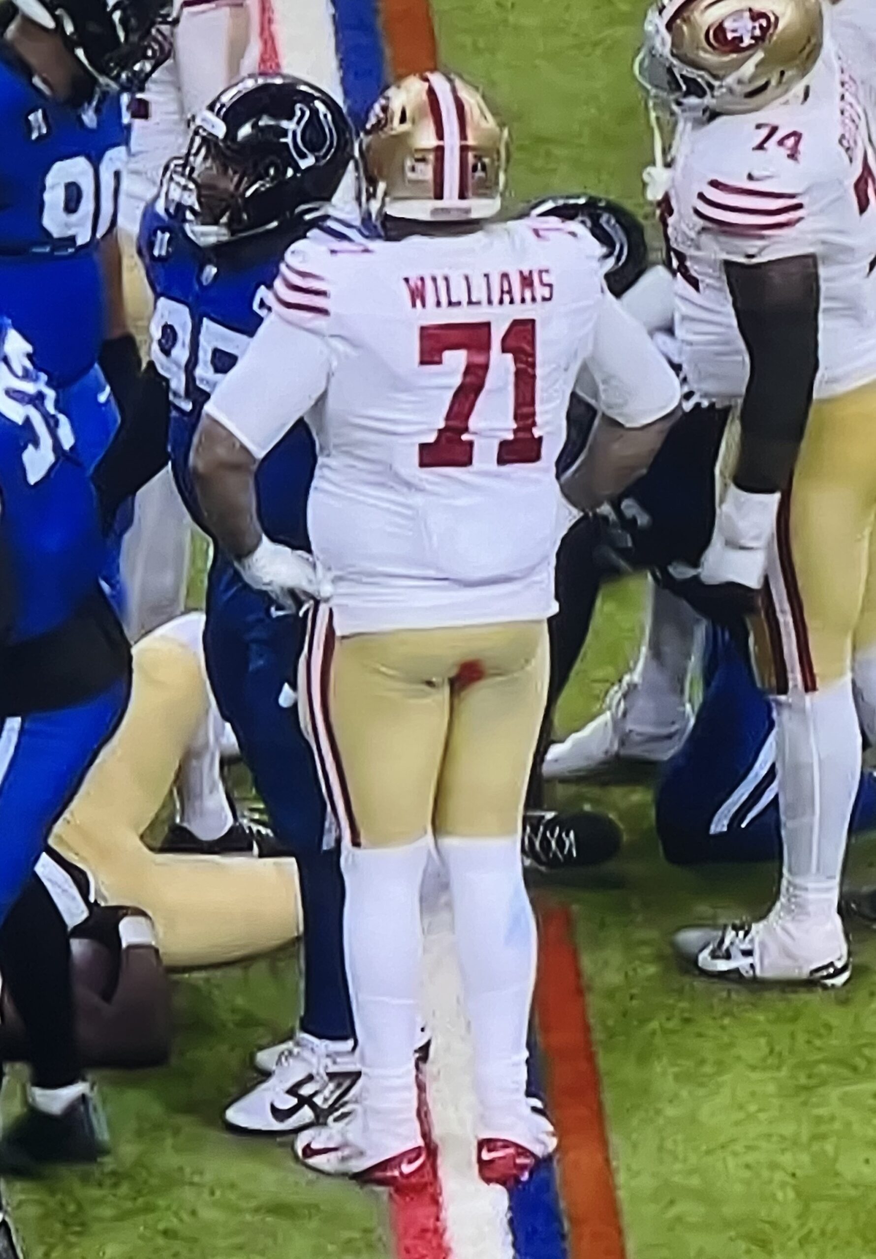 I like how the superimposed red line makes it look like Trent Williams is in a Tampax commercial as a “before” example.