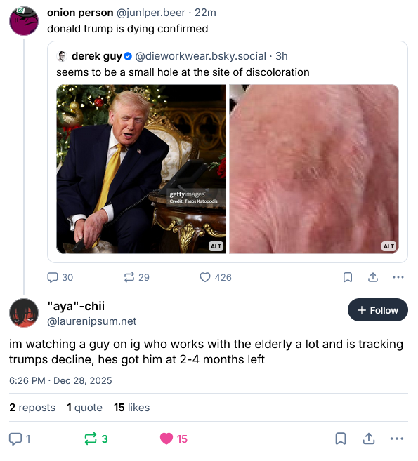 He’s dodged two impeachments, COVID, a sniper’s bullet, etc. He’s going to live forever like Reagan, Kissinger, Cheney, (Hey, wait a minute … )