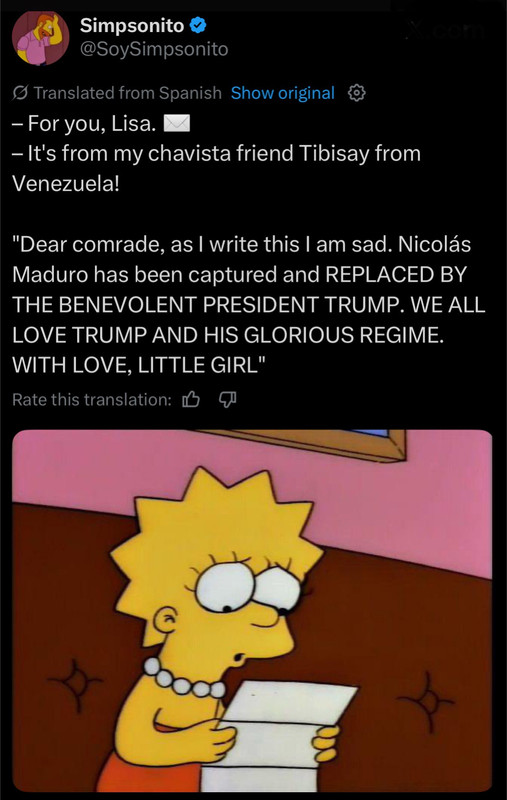 If I’m not mistaken, they also abducted Maduro’s wife. Which makes me think it’s not so much as an abduction as a negotisted abdication that ends with Maduro on house arrest somewhere in Mamdani’s fiefdom.