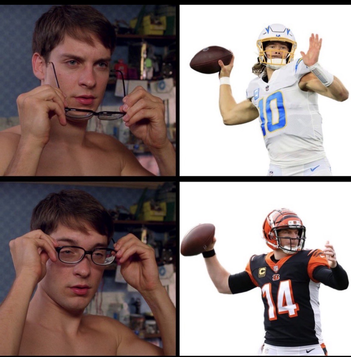 Me too. We’ve had a really bad run of signal callers, this weirdo, Rudolph the Racist Reindeer, and Rapey Ben ( harf). But we’re stuck with him, so let’s go Steelers!