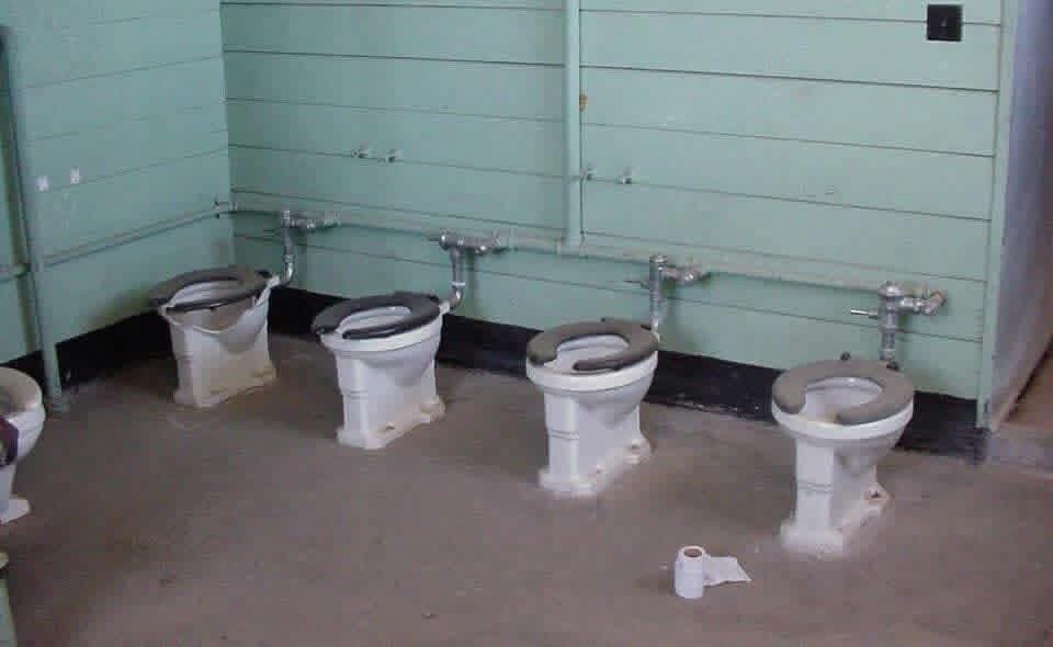 Those were the latrines in the old WW II wooden two story barracks that were still in use through about the early ’90’s. The current set ups are all individual stalls.