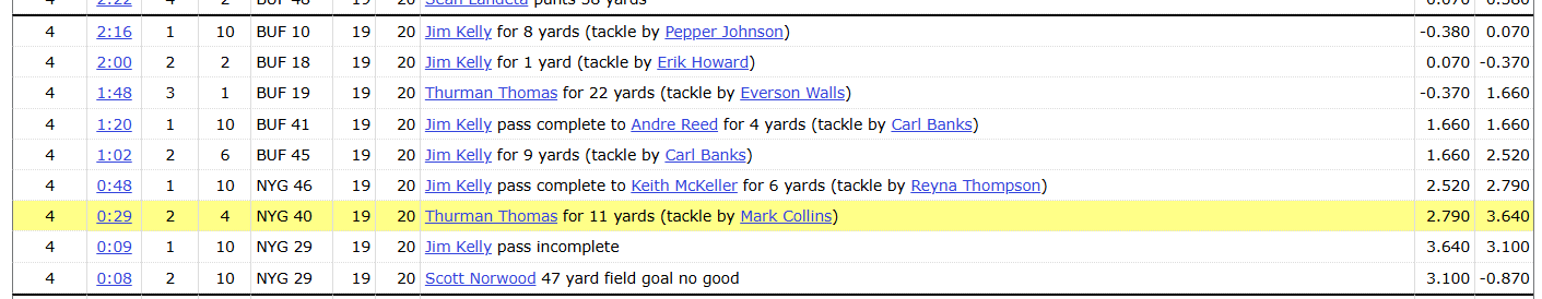 All the shit Scott Norwood gets but no one looks at the Offensive Playcaller for wasting all that time with runs to barely get within field goal range.