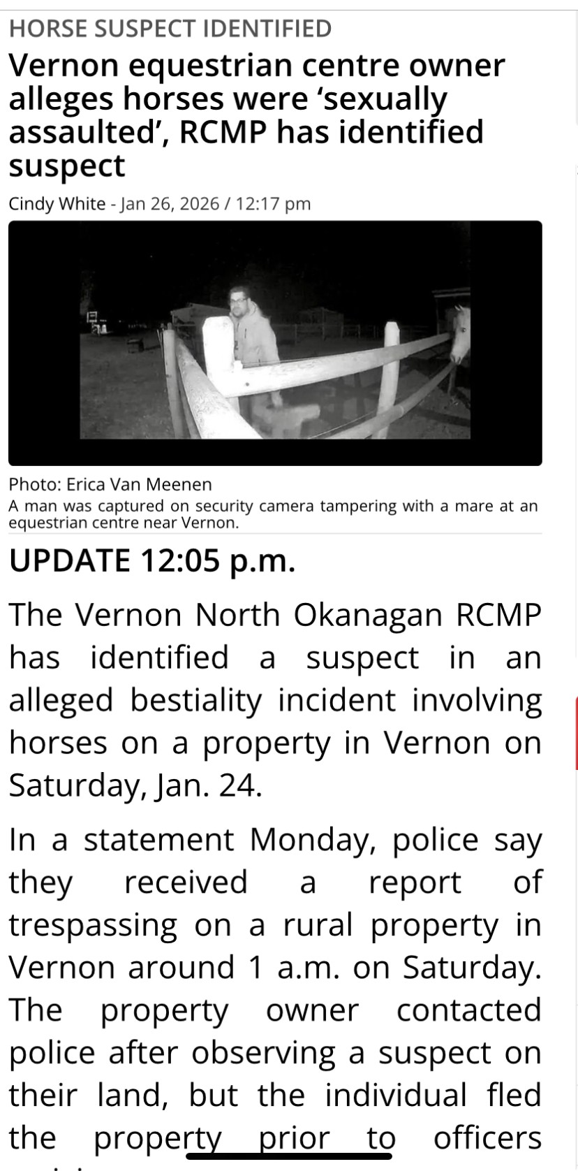 À man in a neighbouring city was caught on security camera fucking horses. He violated three mares and even went to get a step stool to aid in his equine molestation.