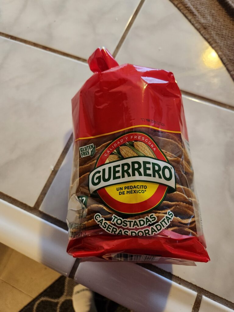 Pro tip: buy a bag of tostadas instead of buying tortilla chips. They are sturdier and can handle dips or other toppings better